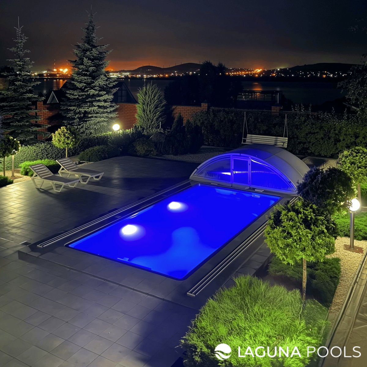 Прямоугольный бассейн с подсветкой и раздвижным куполом